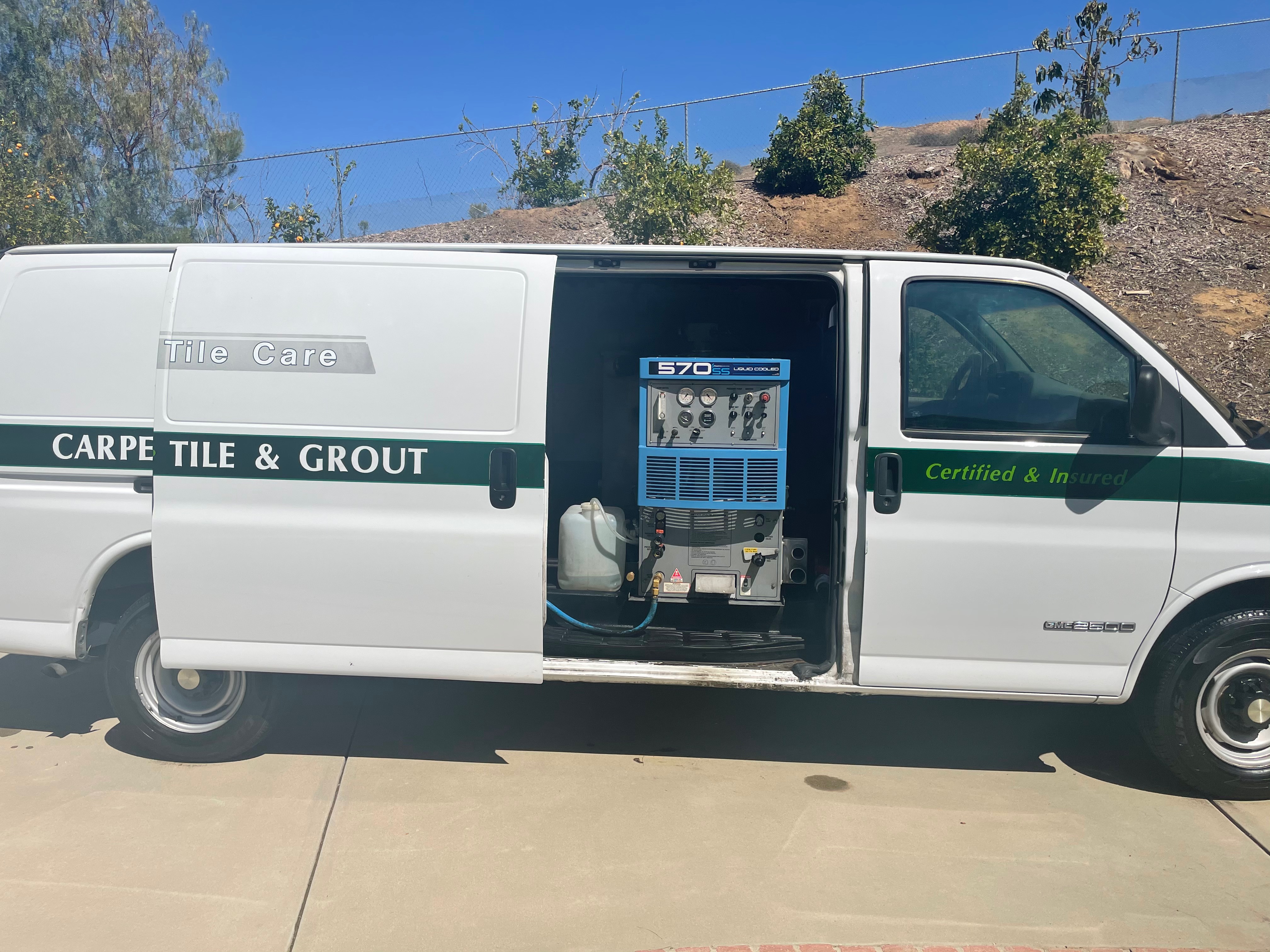 It also comes with an automatic pump-out, Electric Hose Reel , Chemical Shelf and Soft Water tank. Van is line-xThe machine is mounted in a 2001 GMC 2500 van with 88, 200 original miles. I have all service records for this as well.