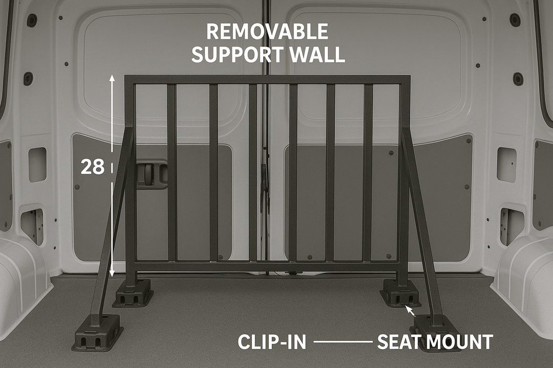 I don’t have any money (or space) for a separate work van, so I really need to find a way to make this work. And because all my equipment is portable it’d be a shame to not also do it in such a way that it can be easily emptied when I want to go on a road trip. Flexibility is the name of the game, not because it’s the best way to do it necessarily, but because without using it for both it really doesn’t make sense to keep it at all.