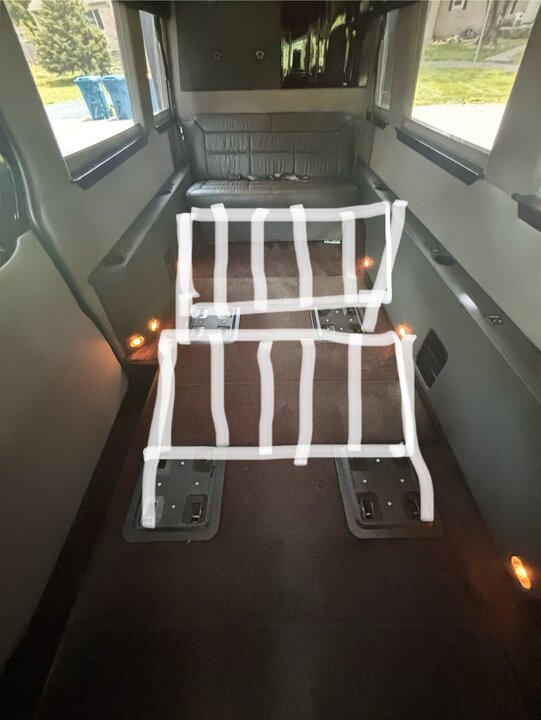 I came up with this idea and got ChatGPT to generate a picture for me. It isn’t perfect but it’s close. Shows a mounting system that can be installed on the seat mounts when needed or easily removed, and I’d have room for two of them. Equipment would be mounted to the supports using ratchet straps. I don’t know how to weld, so I’m thinking about putting them together with Unistrut/Superstrut. Think that’d work?