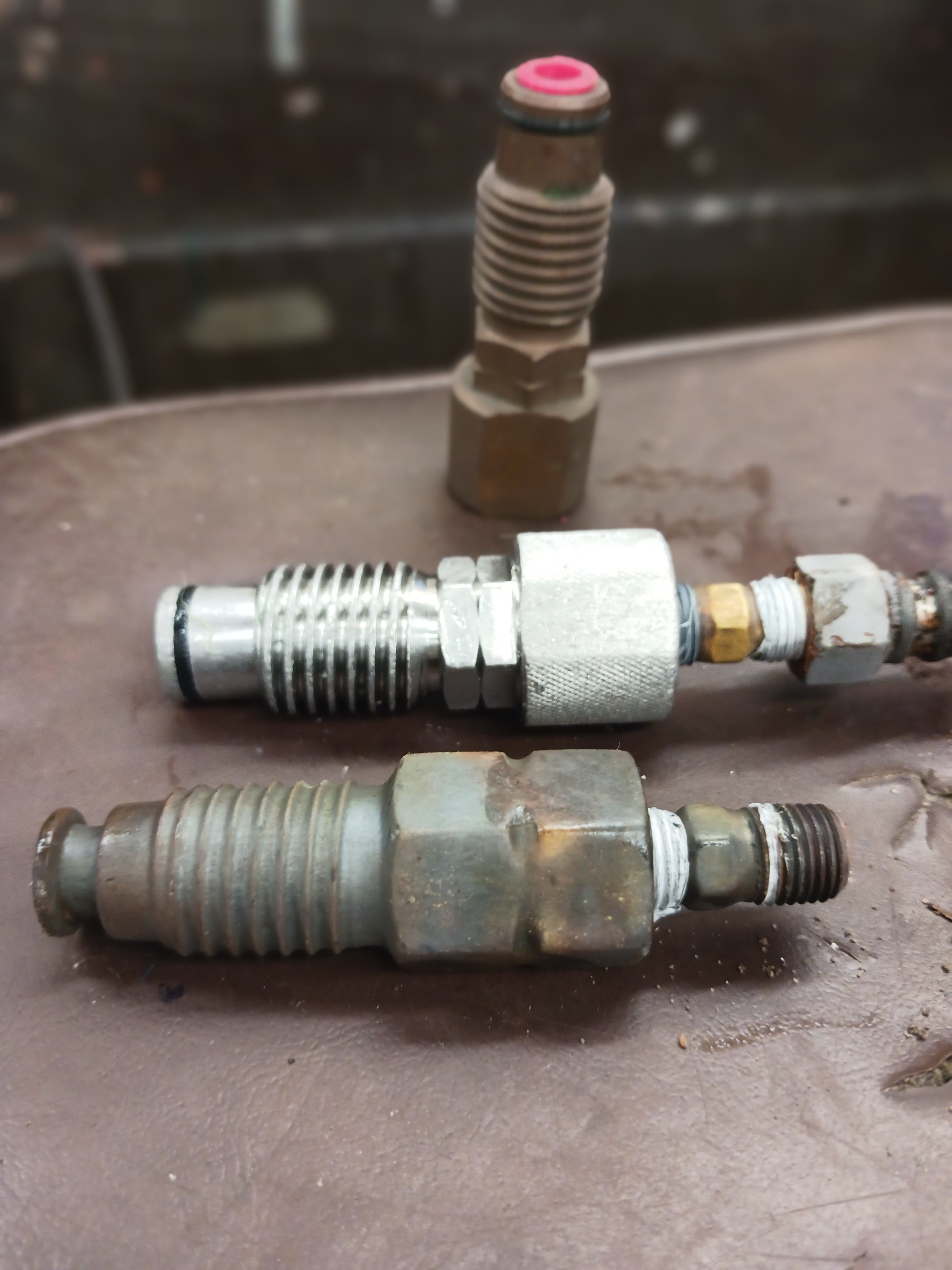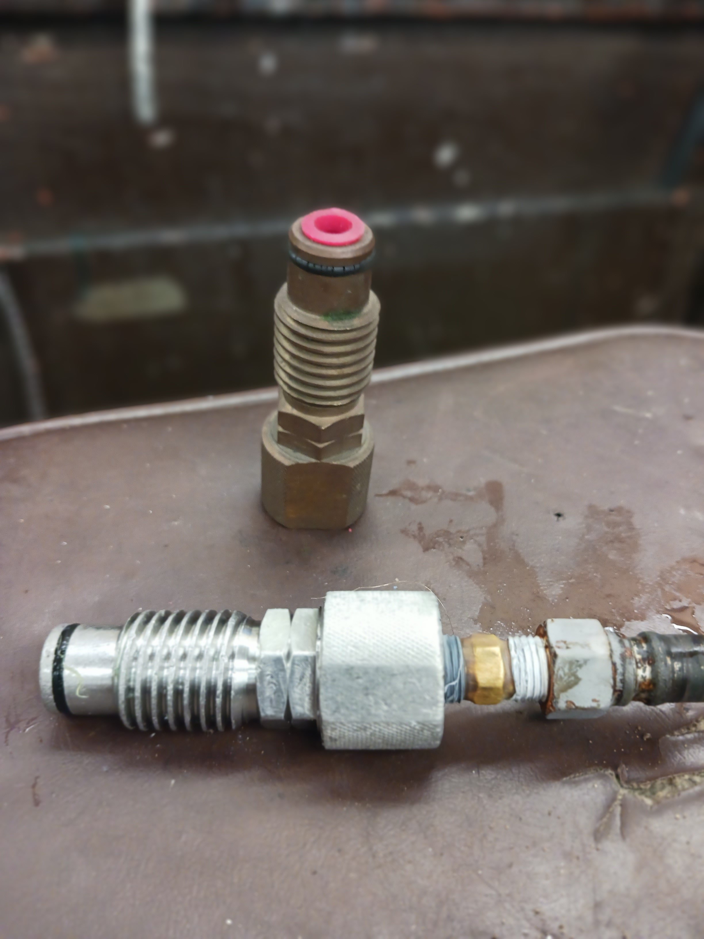 Another tool i came up with was a plug and jet tester if you took the star off for storage , you screwed this inn to keep crap out back end taped 1/4 20 ror quick connect front 1/8 female pipe was so you could clean clogged jets or use as a cleaning sprayer.the first picture is the machinest's interpretation of my idea we called it the "dick " picture #2 is what i had pictured in my mind, but was too expensive to manufacture even made a couple out of nylon. Picture #3was my favorite design and I still use the stainless one (only one made double lead thread)still too expensive to manufacture, bottom hex shape one was the design we could have manufactured using a stock hex material on a cnc machine,