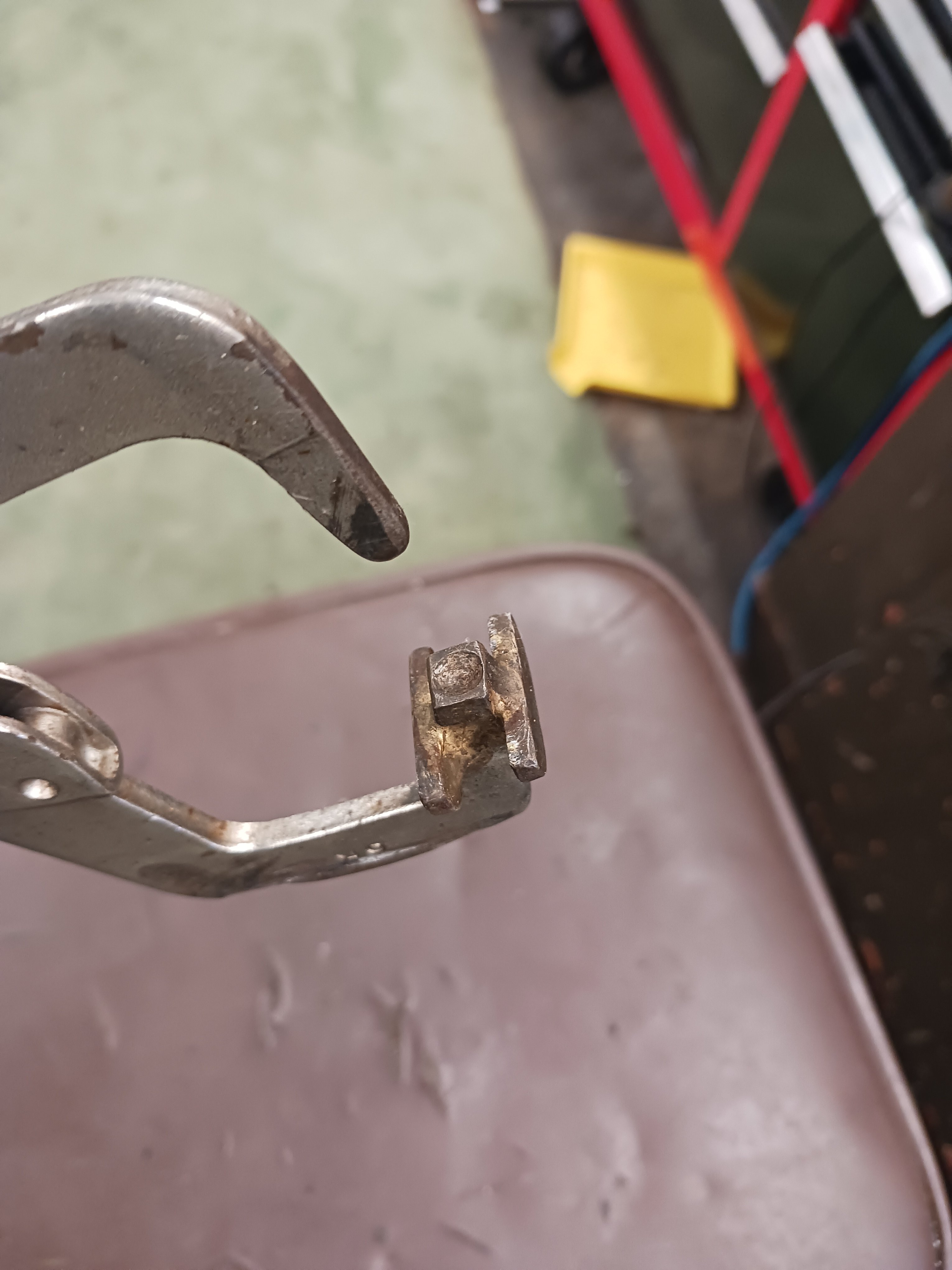 Turn the screw a little, squeeze the handle a little. Bit by bit.