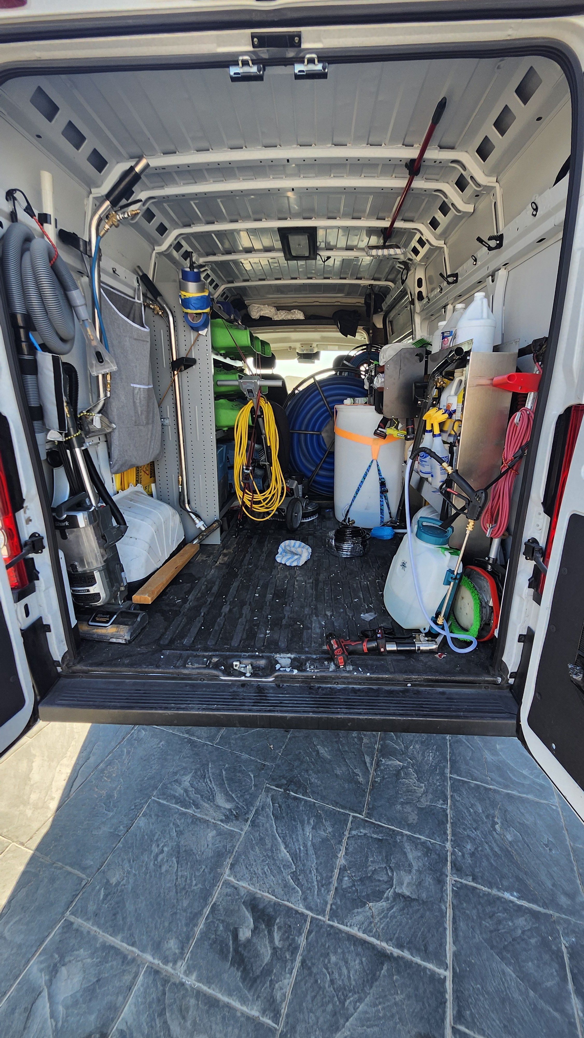 - Weight Distribution: When planning your layout, try to balance the weight in the vehicle. Place heavier items (water tanks, extractors) near the center or closer to the vehicle’s wheelbase to prevent imbalance during driving.