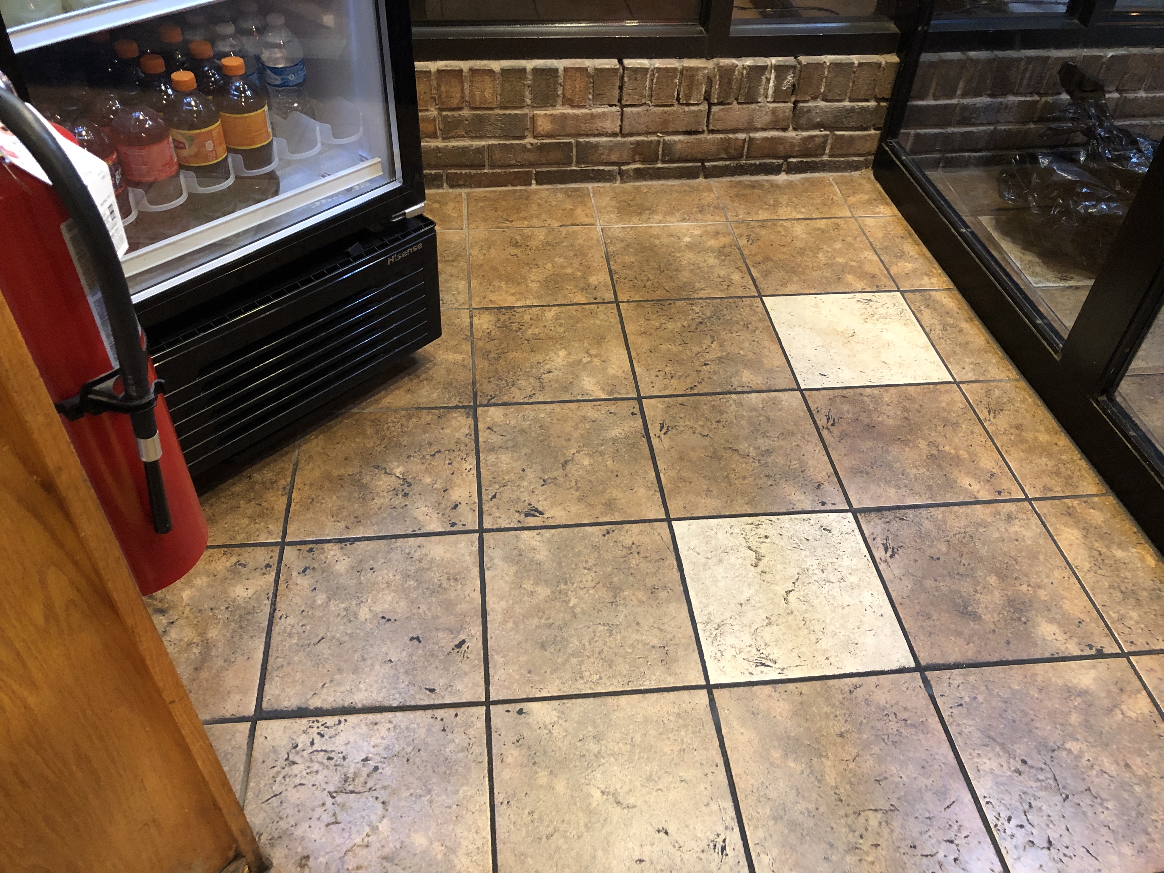 So I'm trying to understand the concept of grout cleaning. I seen those white fill-in-the-lines grout filler products which look like they just paint on top of the grout lines. In this case if dirt is in the grout, it just gets painted over which is disgusting. We cleaned a restaurant floor last night with degreaser, a stripper and grout brush on rotary buffer machine. I cannot distinguish what worked better. Does anyone know if degreaser or stripper works best for tile and grout like this? My partner and I hand scraped every inch of this 2000 sq ft floor. It was so bad it seemed the grout needed to be scraped first and the floor cleaned afterwards. I almost wanted to charge an extra $200 on top of quote to scrape out the grout. The scrape work was very intensive. Now can anyone tell me if we are cleaning this right? Is this dirt we are scraping out of the grout or are we damaging the grout? Is this black grout or is this just dirt buildup in the grout? I have no idea but this process took a long time and will need a new technique or brush to get this up. The black stuff was so hard to scrape out in some areas it made me think I was damaging it. Now the last picture in the post is the final product. So can someone tell me if we damaged and pull up all their grout filling or was it years of caked up dirt and grime? If so how we clean this better instead of hand scraping? I was thinking of a harder roatary brush such this MAL GRIT Brush: https://www.unoclean.com/Malish-813...h-Plastic-Block-80-Grit-18-Inch-Diameter.aspx