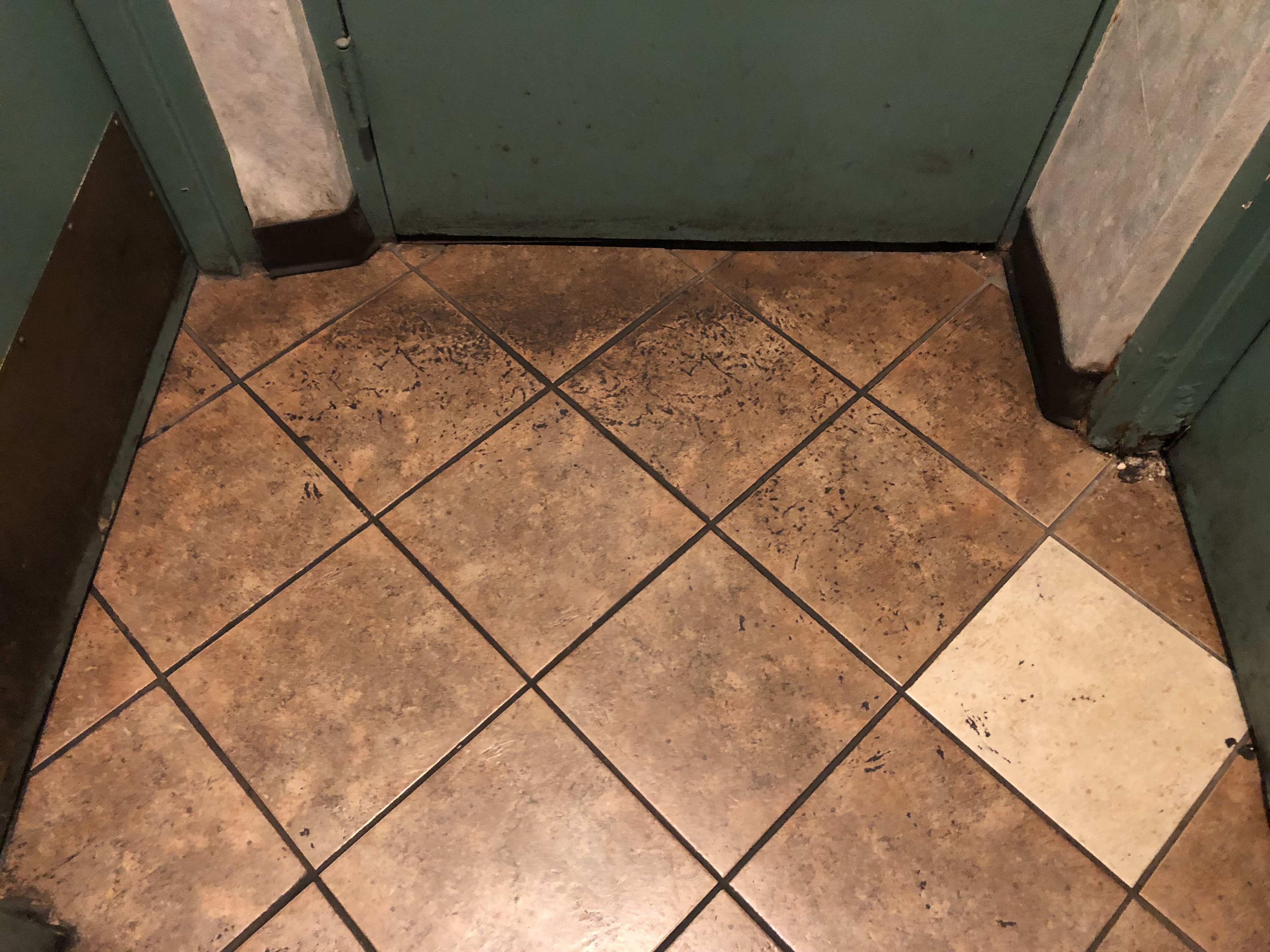 That's a typical scenario with commercial kitchens that haven't been cleaned in years first you got to scrape off the layers and layers of Grease and then clean the grout underneath ..strippers and high alkaline cleaners won't break that stuff down.