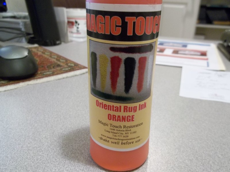 It is not a normal dye, it actually paints or colors a rug covering problems without stiffening the wool fibers. It was a very effective product.
