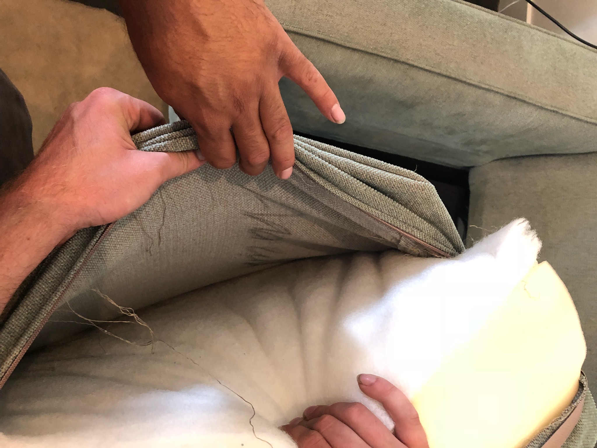 I had tested the chair material for bleeding, but didn't expect the ottoman to have been a cheap recover job...