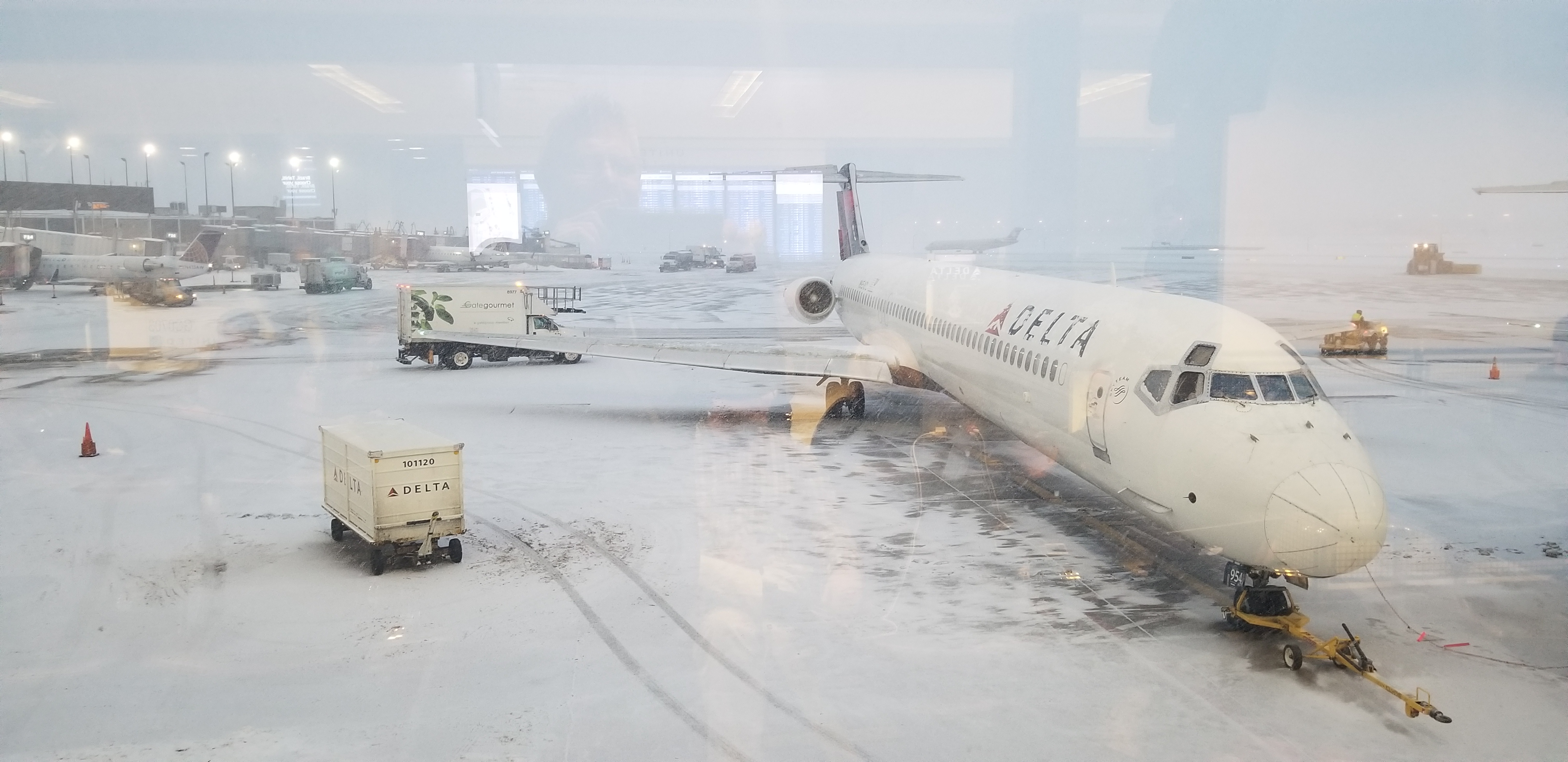 Sat on the plane in Chicago today about 3 hours before being de iced twice... Digging ice out of the jet motor...