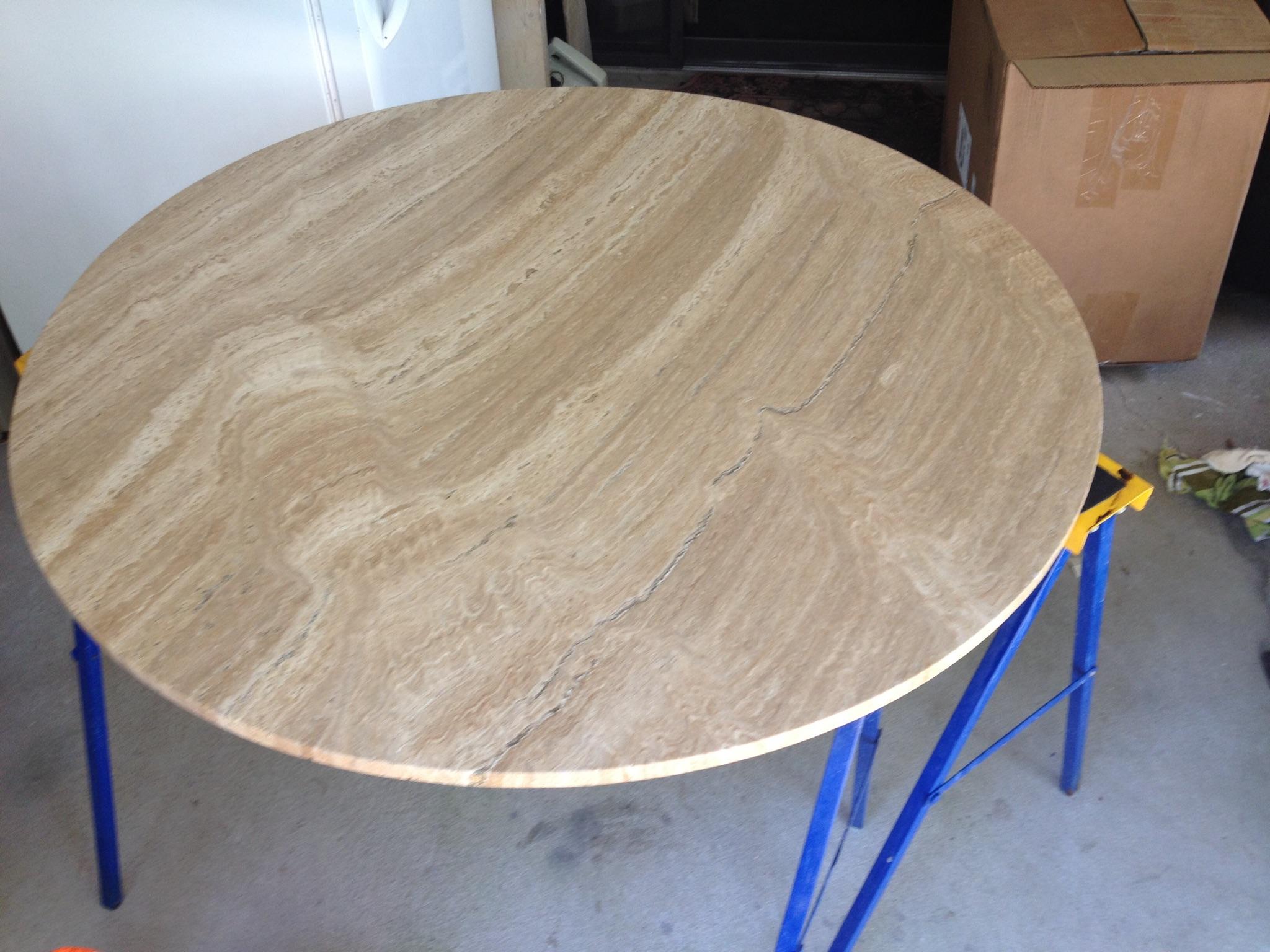 I am new here and seeking some expert advice. I have a table with a round Travertine top that has been in the family for about 60 years. It has gotten dull looking all over, with what I guess you all refer to "etch" spot areas that are a little worse. I have been looking all over the net for info and products to try to re-polish it; and finding lots of info that is sometimes conflicting. Most of the products only come in large bulk quantities to do hundreds of square feet of flooring etc. Some recommend dry polishing powders, and others the paste type compounds. Some contain acids, that require special neutralizing rinses; and I worry about getting on the wood. Others seem to involve diamond impregnating pads and use a very low rpm polisher that I do not have. My question;; .... is it possible to re-polish and put a fairly even shine (doesn't have to be a really high gloss; just even looking again with some shine) by maybe using a wet/dry 800 grit sandpaper and wet sanding it? Table top is about 3' in diameter. If this is possible; would it be best to do by hand, or with an orbital sander?