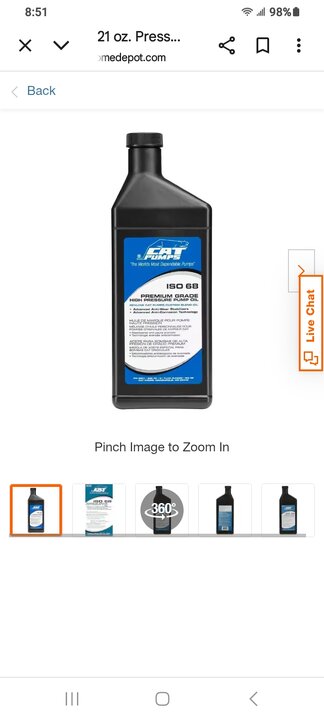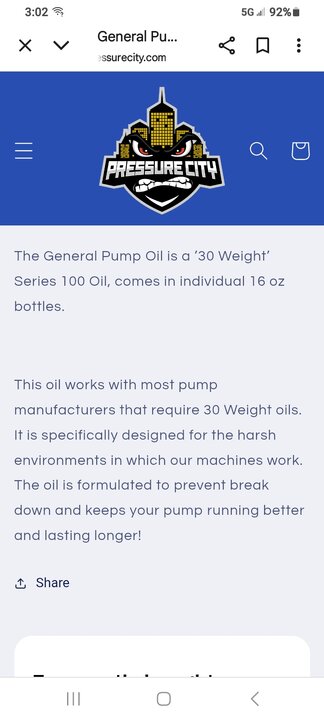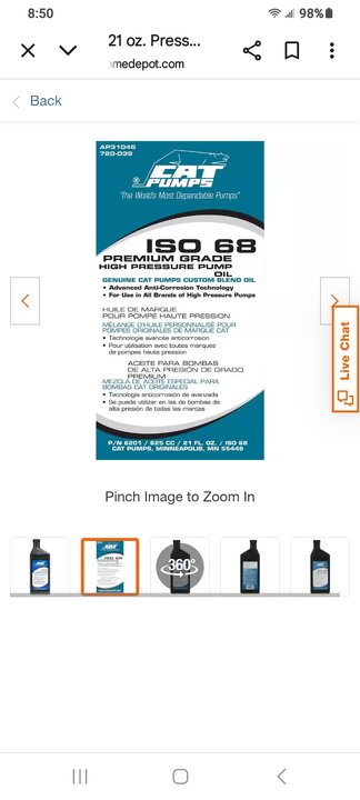 The proper pump oil is expensive stuff. General Pump 100 series oil is $13 for 16oz on scamazon.