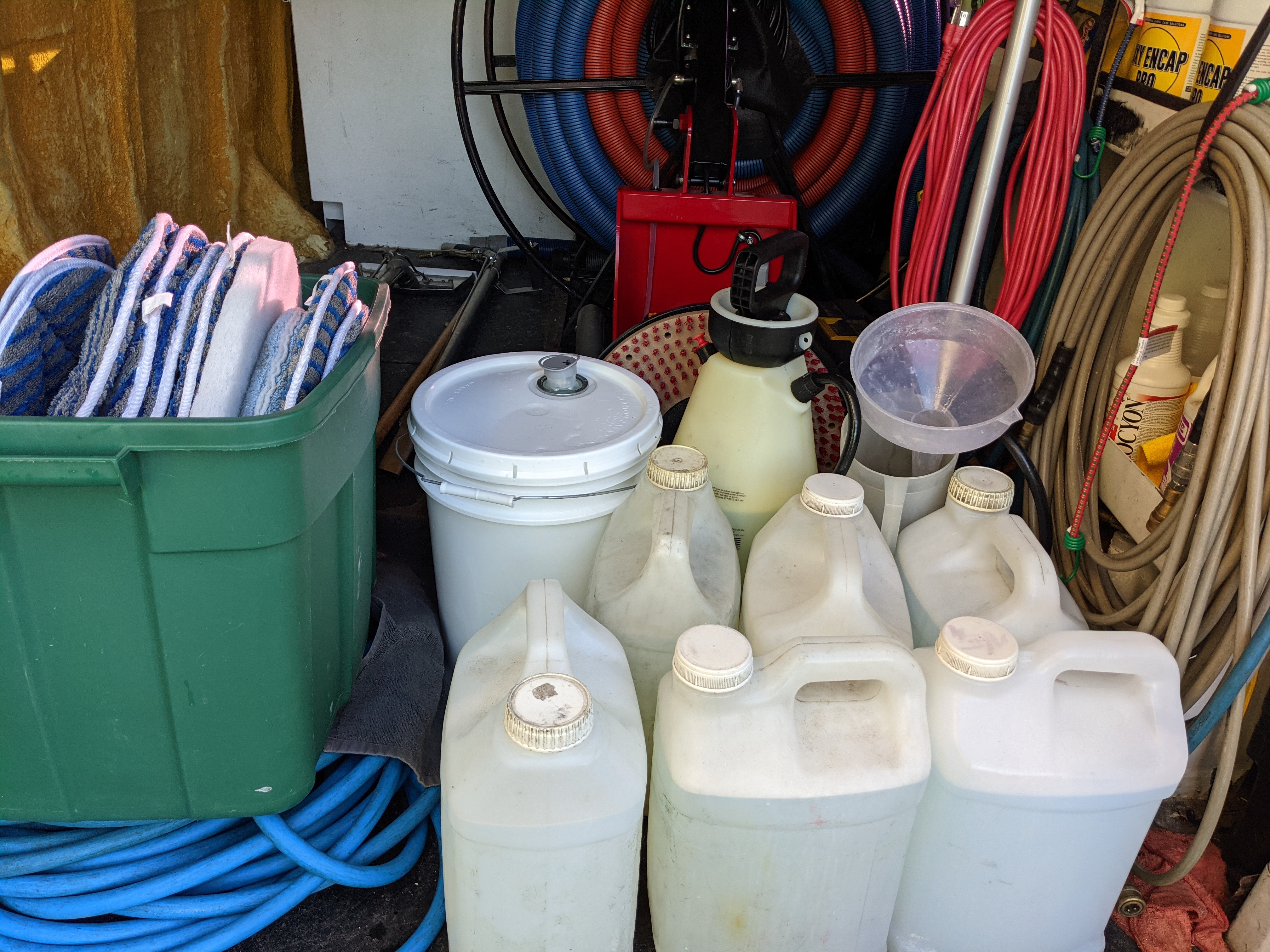 Have a large condo building I am doing today. Used to set up 350 feet of hose and spend 6-7 hours on this job. Glue down carpet that's been abused for 30 years. The floors are so uneven the wand chatters and skips all over the place. Used the Trinity Phoenix last time and what a difference. Easy passes up and down the hallways, wiping out all the coffee, beverage drips and urine stains like a hot knife through butter. Using Harvard's Oxy-encap. I premix all the chemistry I feel I will need and just swap out the jugs and pads as necessary. Extra 5 gallon pail of water incase I need to mix a little more. Oreck for the stairs.