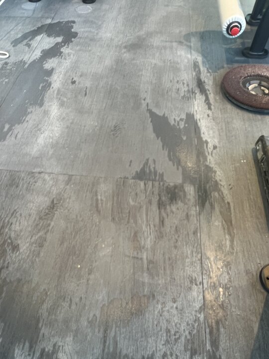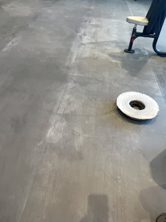 We tried test areas with brush , spinner 700-1000 psi. Alkaline cleaner , neutral cleaner , citrus, and acid floor cleaners. The haze just comes back. Minor improvements over all but not much. We used a crb with aggressive brushes , swing 175 rpm with pads , brushes and rinse with auto scrubber Won’t budge . It appears to have a residual stuff on it in some areas more than others . If I use a rag with little neutral cleaner and rub really focused with my thumb it appears to come off. If I scrape it like small area with my finger nail almost scuffing up the rubber it comes off a bit. Any tips? The floor looks as we got it . We only tried a few test areas