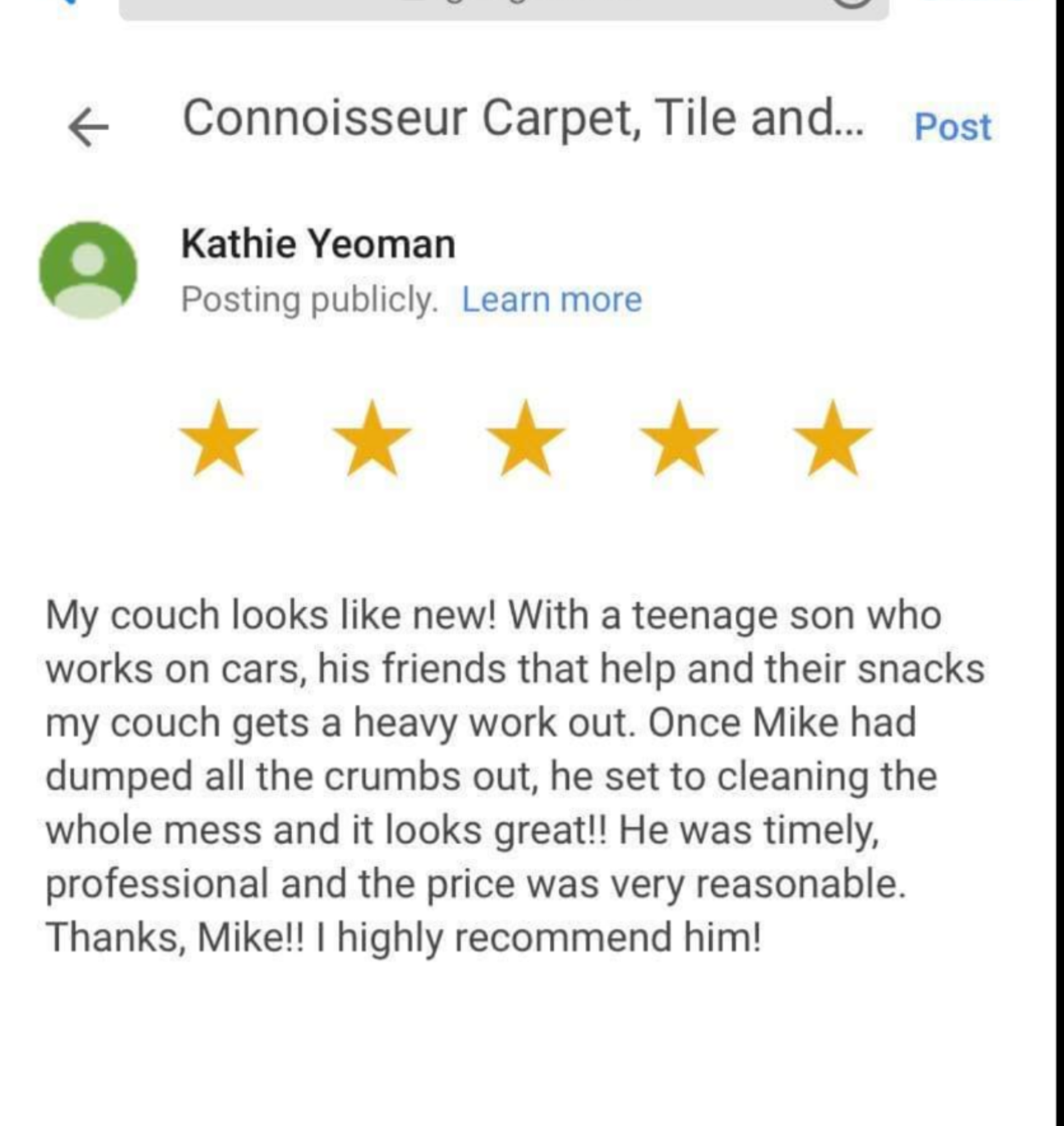 The next day she booked another appointment with me-- told her it would be a "standby type" --meaning I couldn't give her an exact arrive time and there is a chance I might not make it.-- she took it. Turned out to be a nice, quick filler job for me and she was very happy.