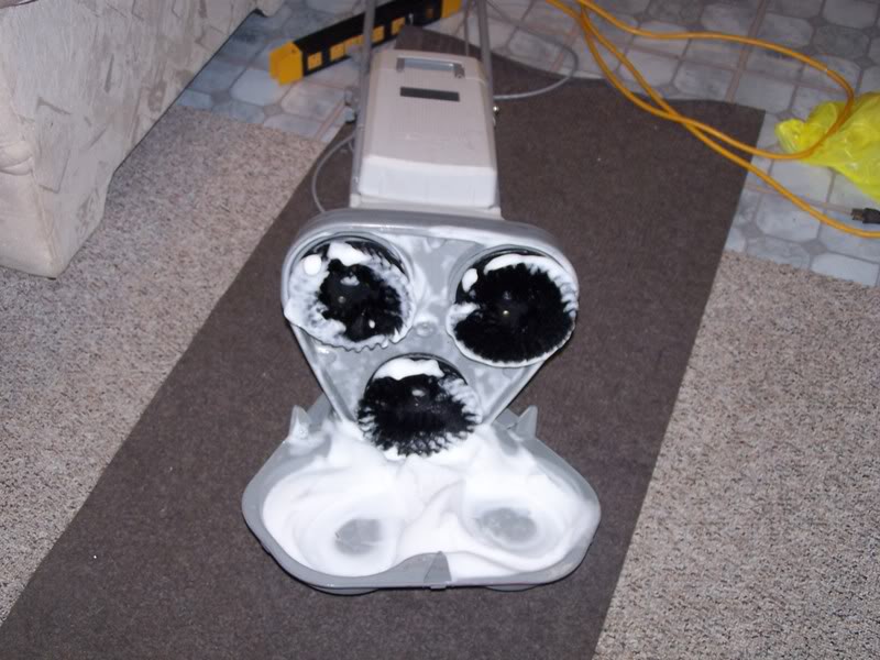 Now I was concerned that If i continue with shampoo I would brown out the whole town and i couldn't afford a porty so I rented. I new the electrolux did an awesome job so I would use that first and then rinse with the porty. That's when I invented the scrub and rinse system. LOL