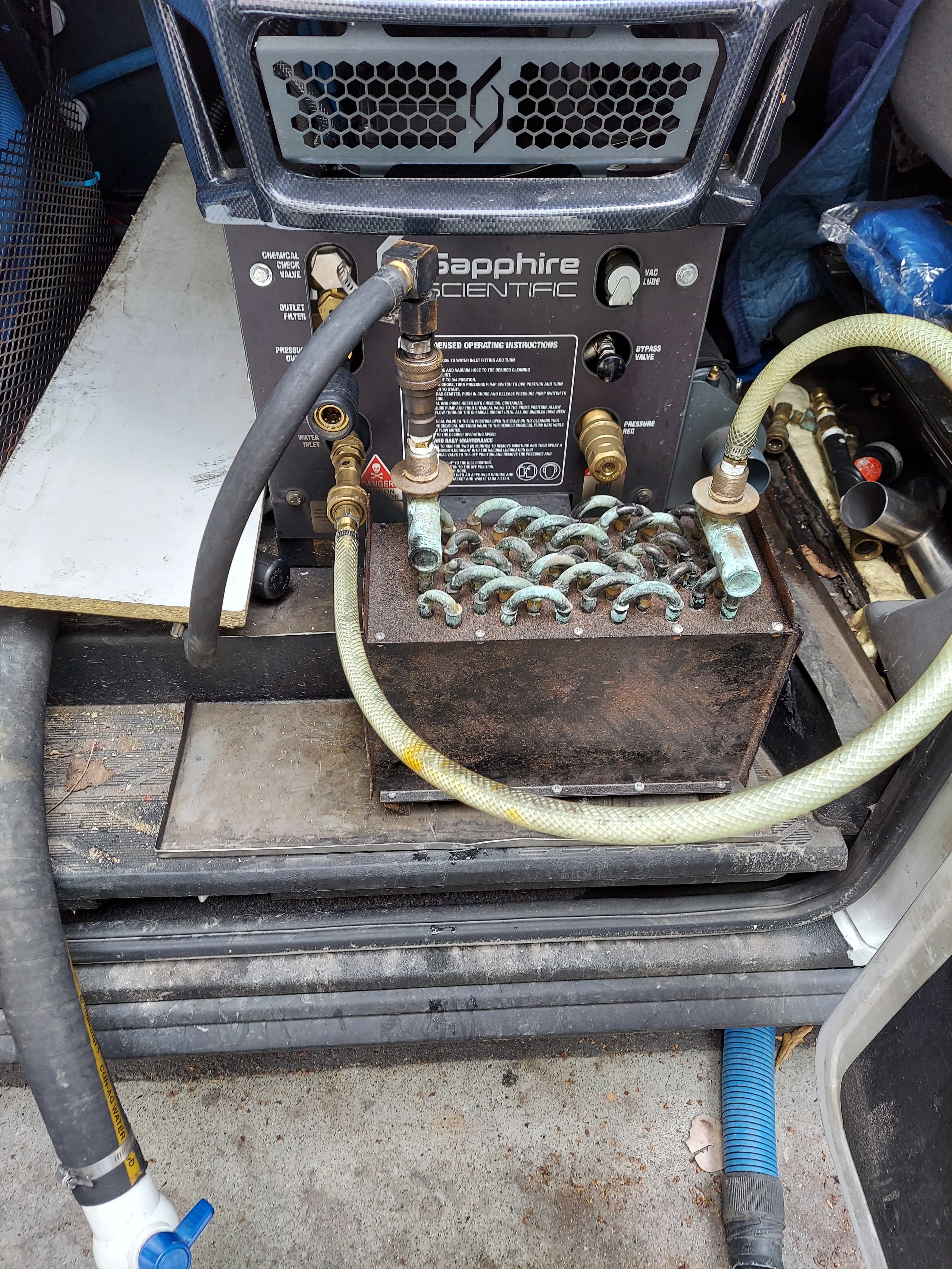 A future improvement would be to install it under the van with a custom exhaust system for the TM. and have manual diverter valves when hotter water isn't needed.